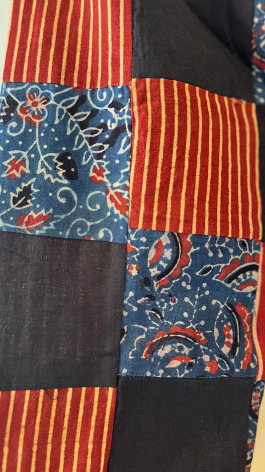 Vibrant Coral Ikat Cotton Kurti – Embellished Elegance