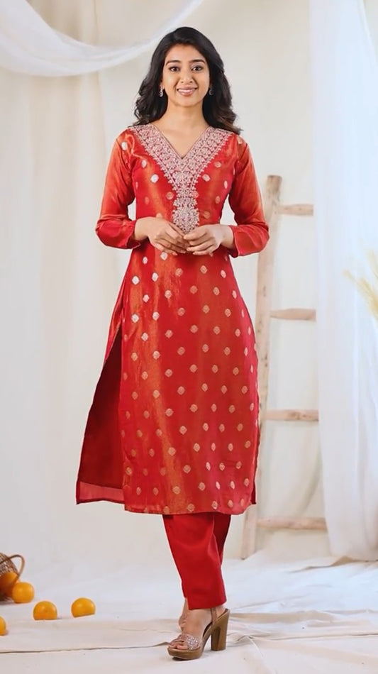 Regal Orange-Red Pure Viscose Organza Kurti Set with Exquisite Zardosi Work