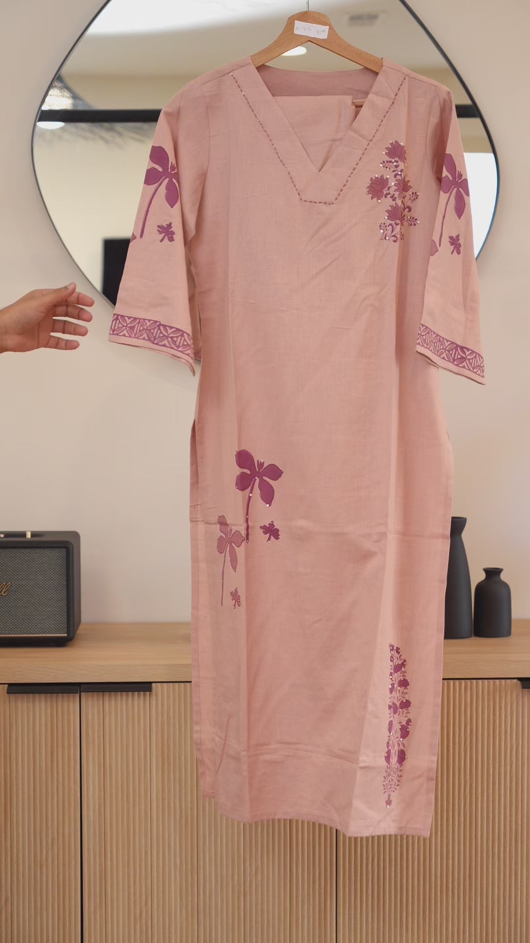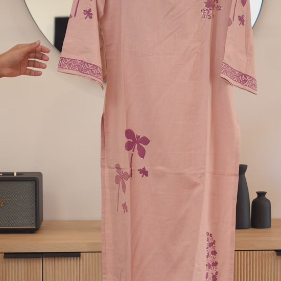 A soft baby-pink kurti crafted with graceful embroidery for a fresh and feminine everyday look.