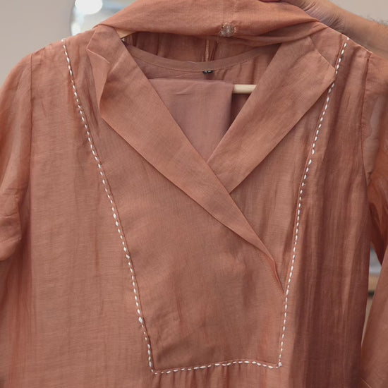 Elegant chico-toned kurti set adorned with fine embroidery for a subtle and sophisticated look.