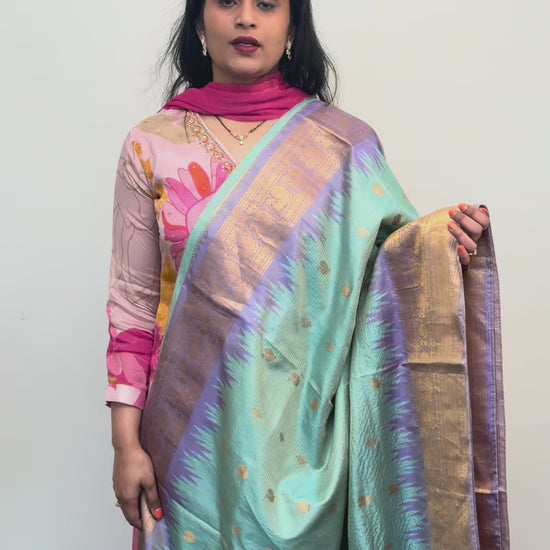 Gadwal pista green and lilac saree