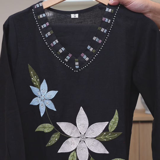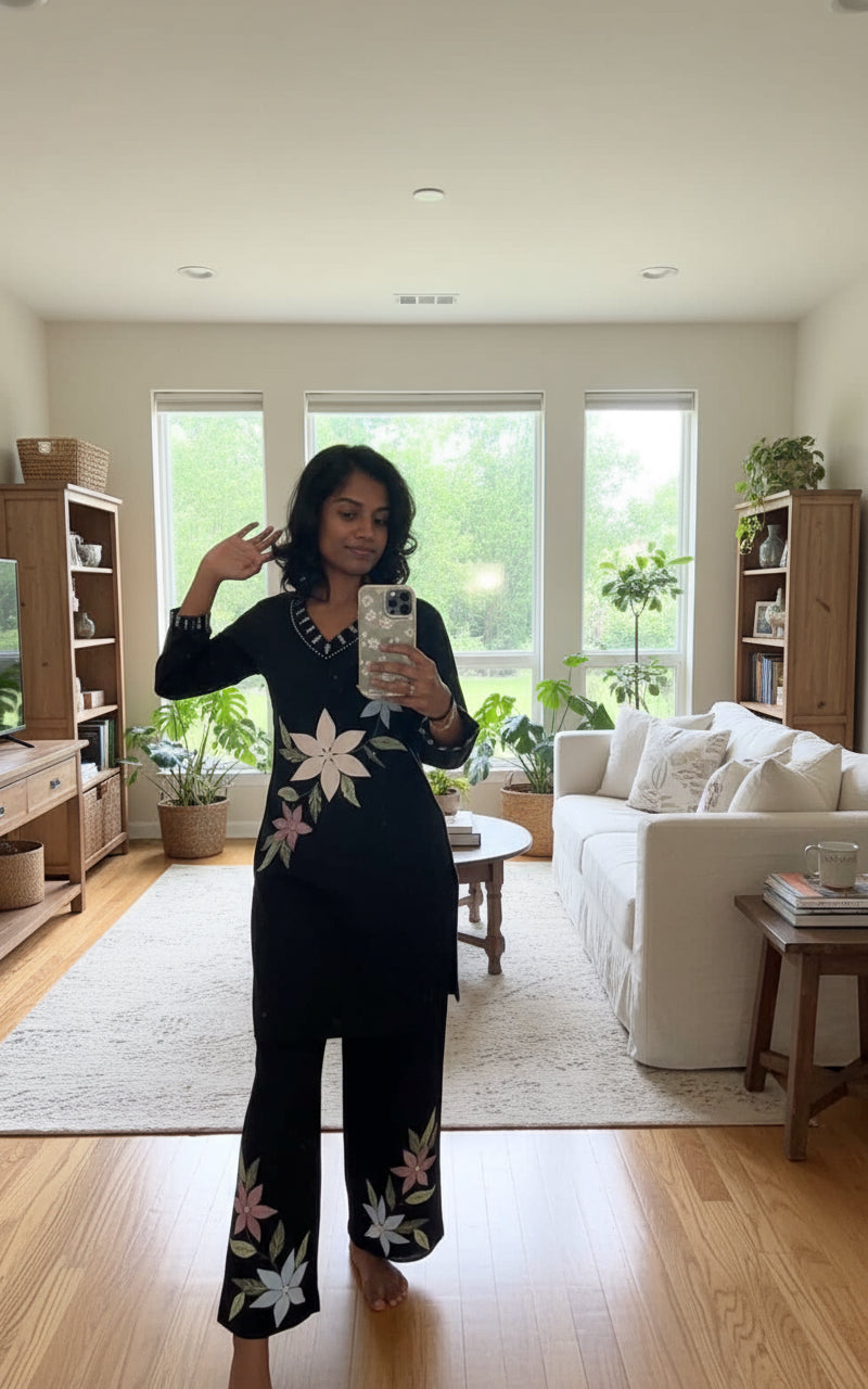 DV Only Stylish Black Cord Set with Machine Embroidery
