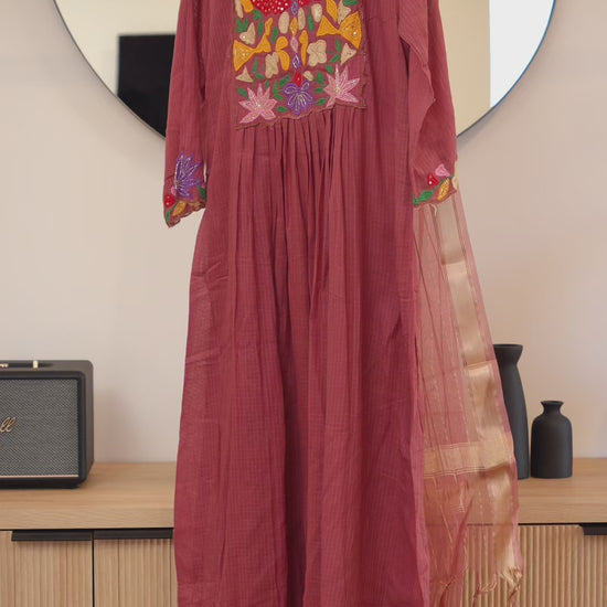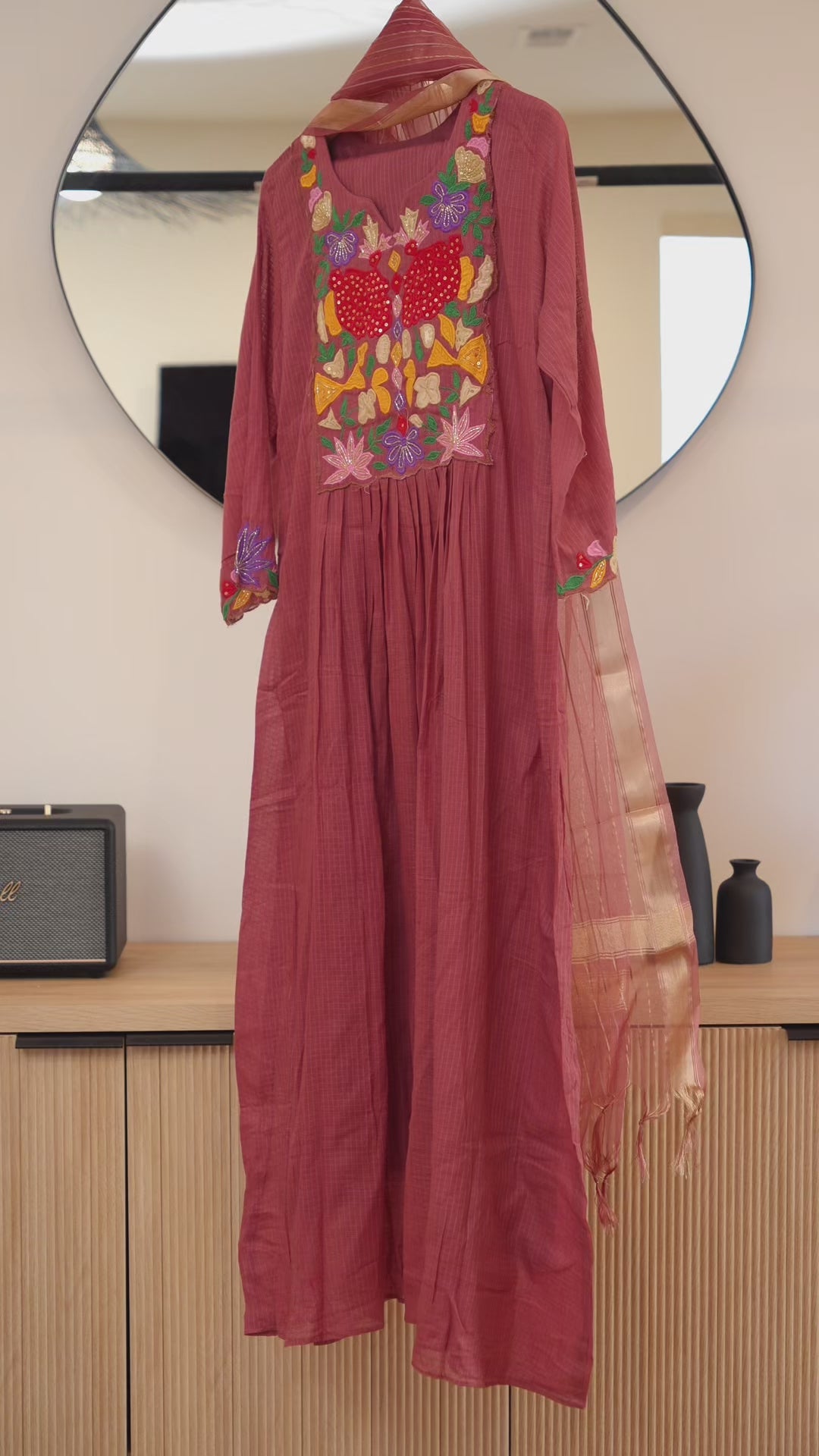 DESCRIPTION:A stunning mauve kurti richly embellished with vibrant multicolor embroidery and red sequin detailing for a festive, standout look.