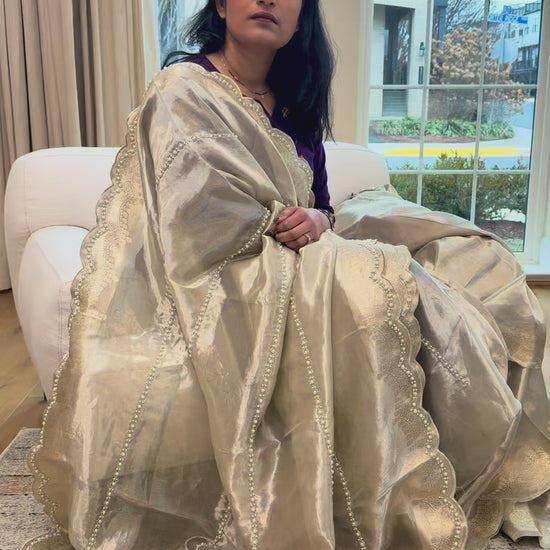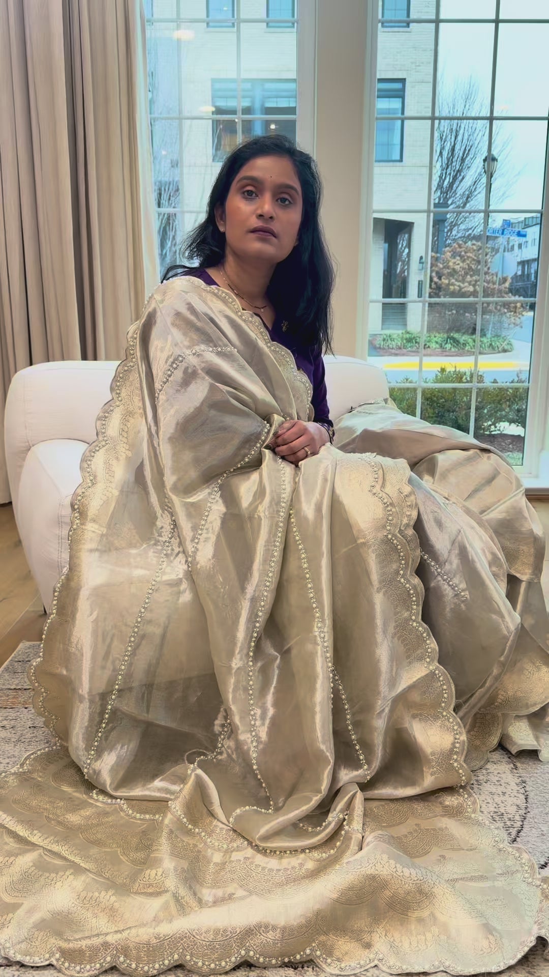 PearlBloom Double Tissue Zari Partywear Saree Set