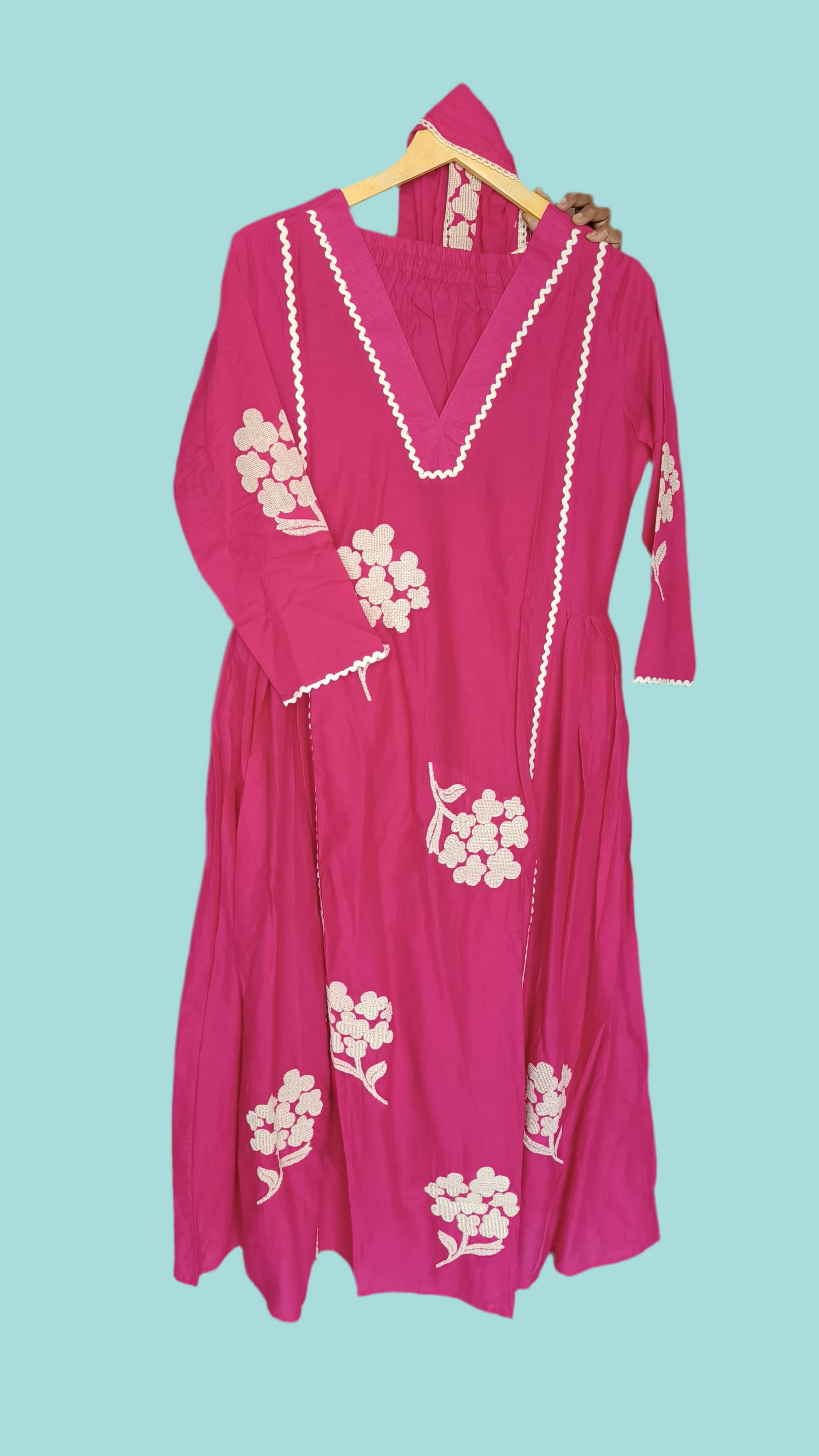 Soft pink cotton kurti set delicately adorned with embroidery for a graceful and timeless appeal.